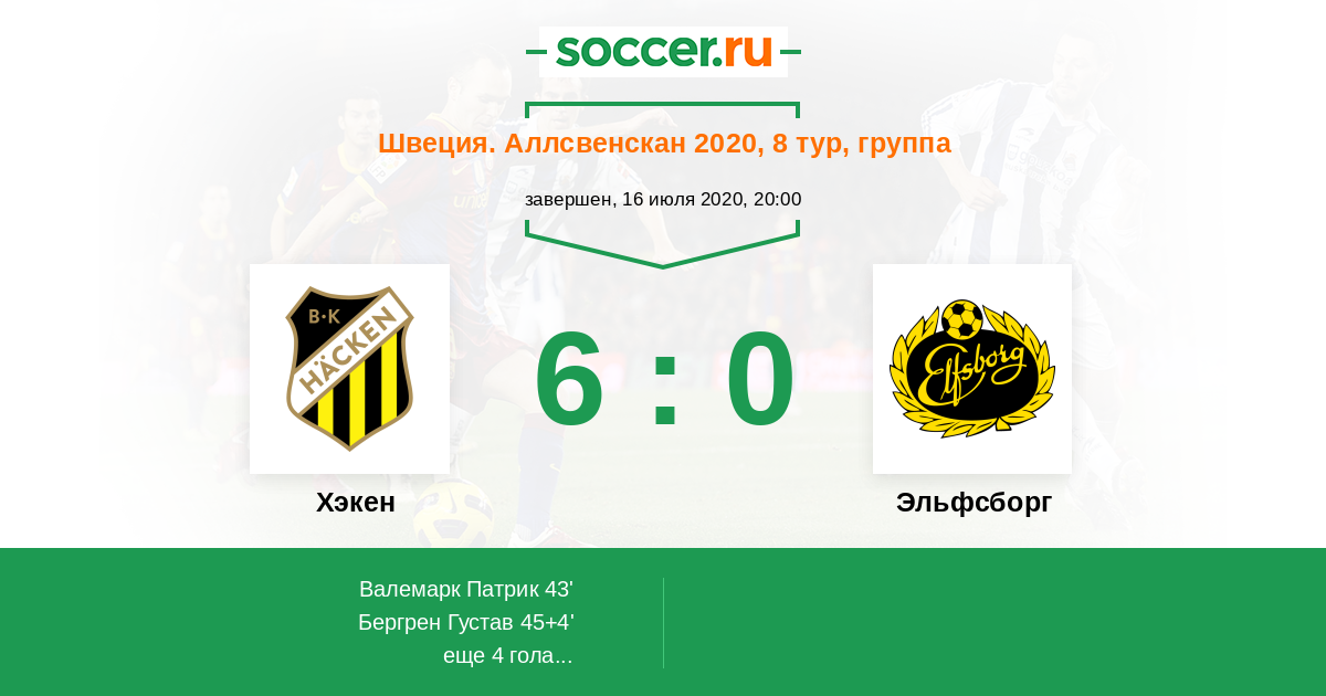 Протокол матча Хэкен против Эльфсборг