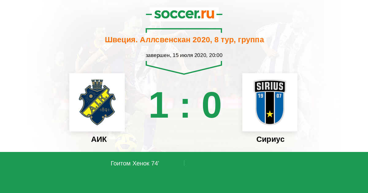 74' (1:0) Гоитом Хенок (36) (Ларссон Себастьян (7))