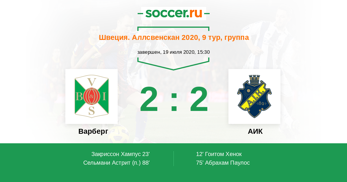 23' (1:1) Закриссон Хампус (3) (Айер Кенин (42))