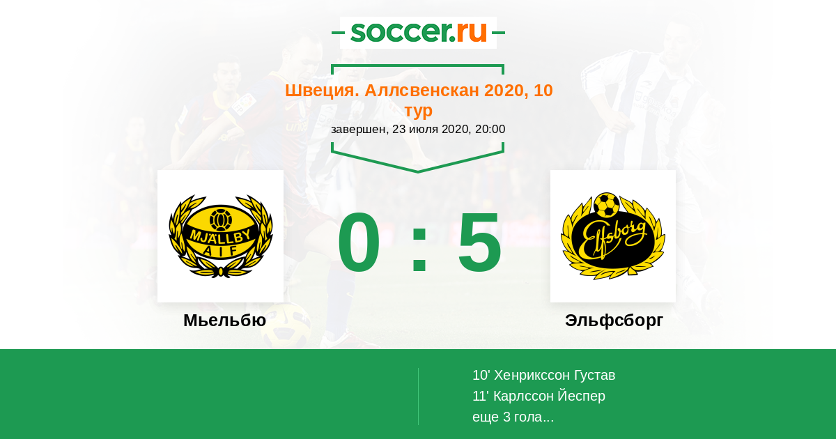 10' (0:1) Хенрикссон Густав (5) (Карлссон Йеспер (11))