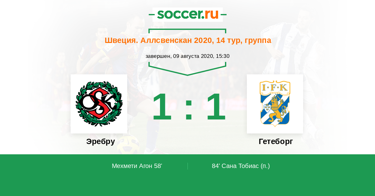 Протокол матча Эребру против Гетеборг