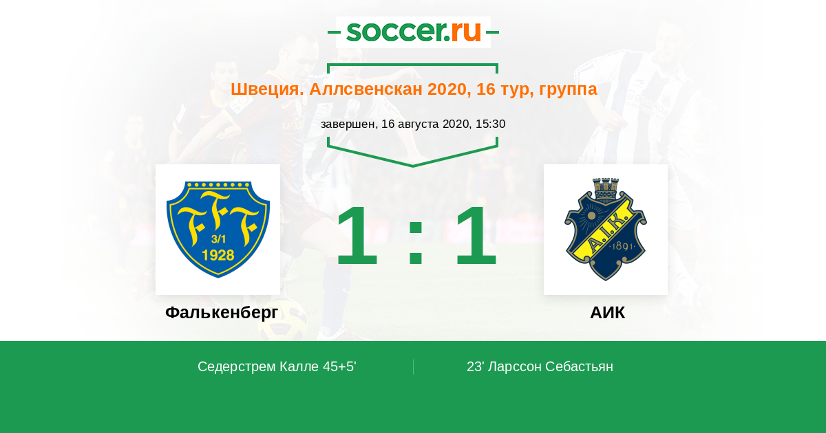 Протокол матча Фалькенберг против АИК