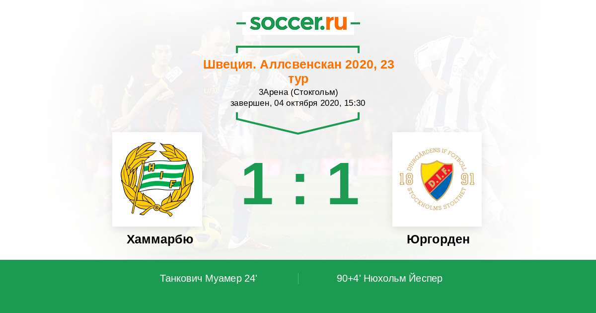 Протокол матча Хаммарбю против Юргорден
