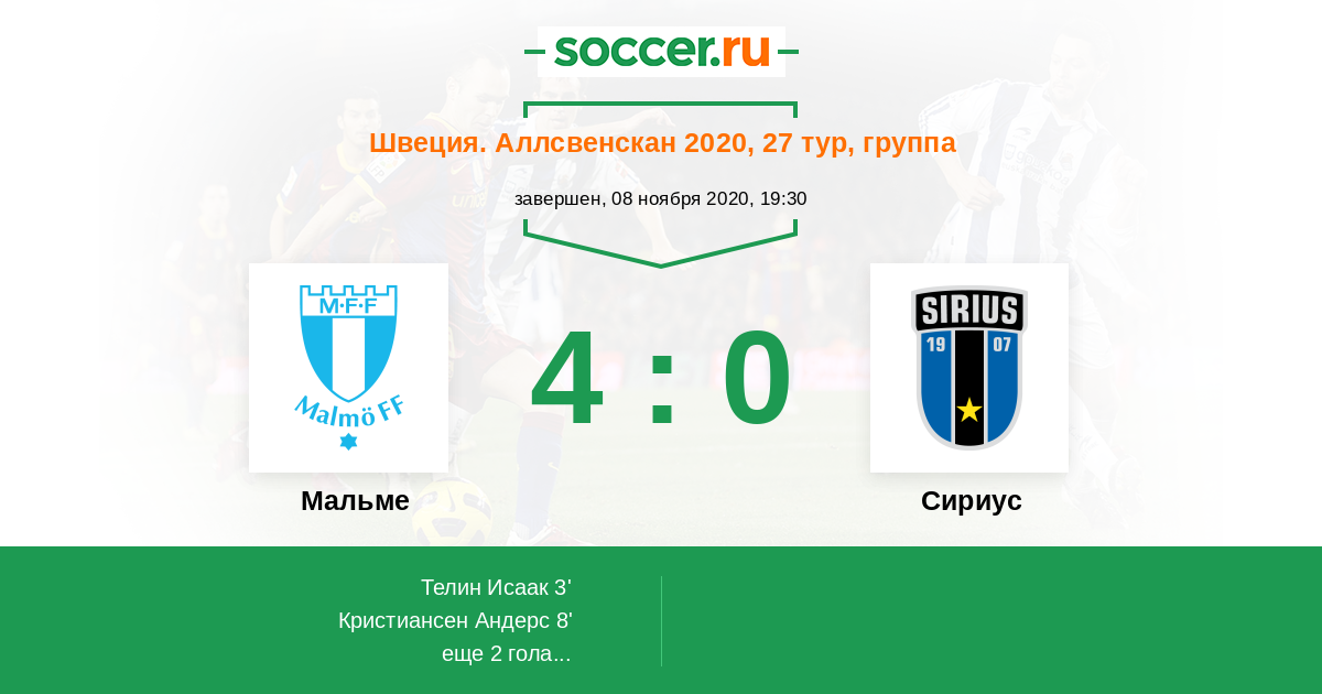 Протокол матча Мальме против Сириус