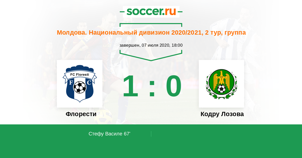 Протокол матча Флорести против Кодру Лозова