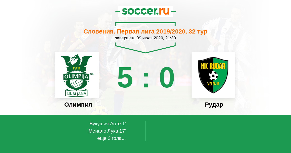 Протокол матча Олимпия против Рудар