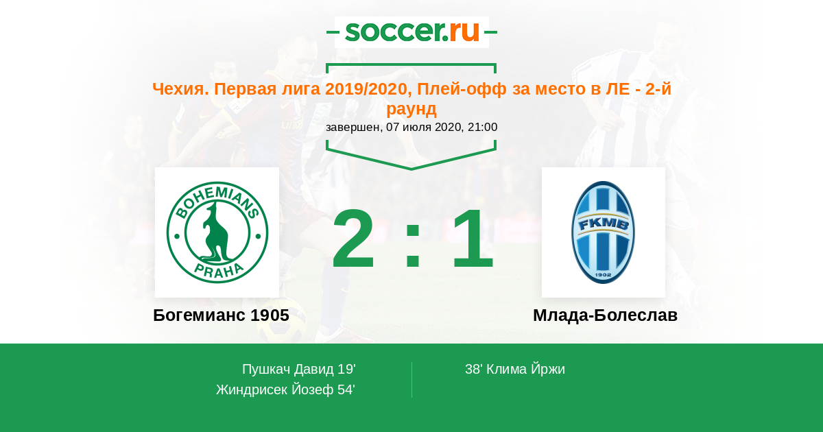 Протокол матча Богемианс 1905 против Млада-Болеслав