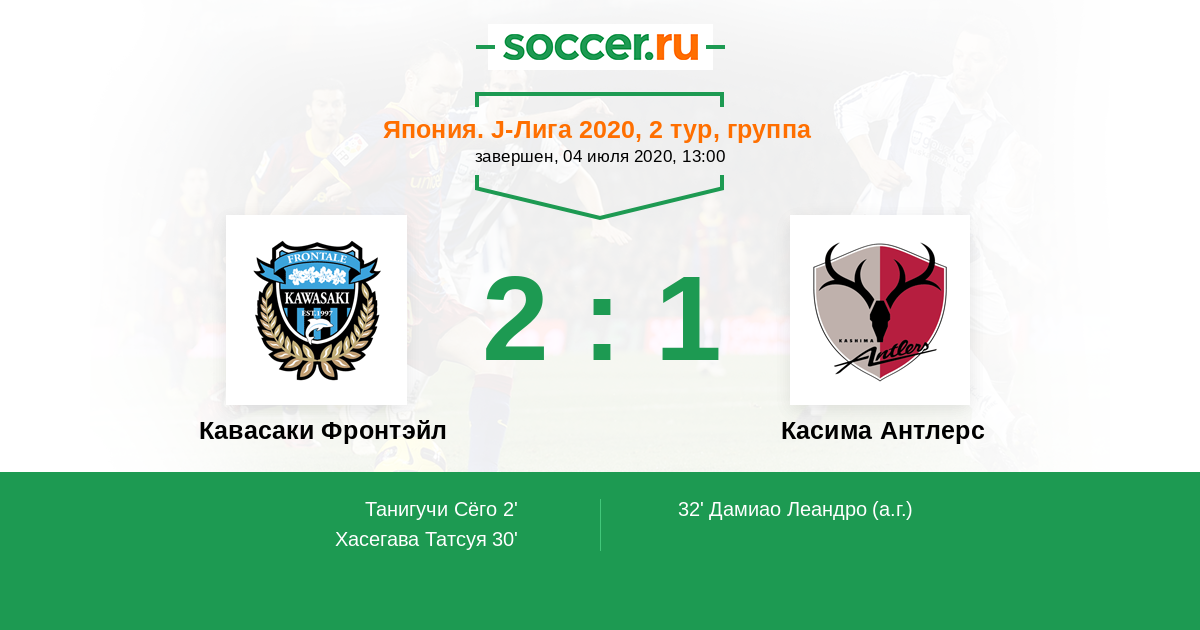 Протокол матча Кавасаки Фронтэйл против Касима Антлерс