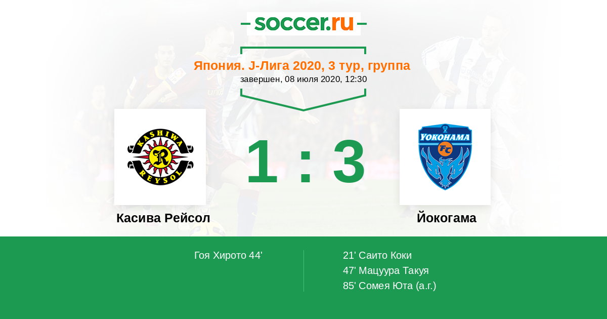 Протокол матча Касива Рейсол против Йокогама