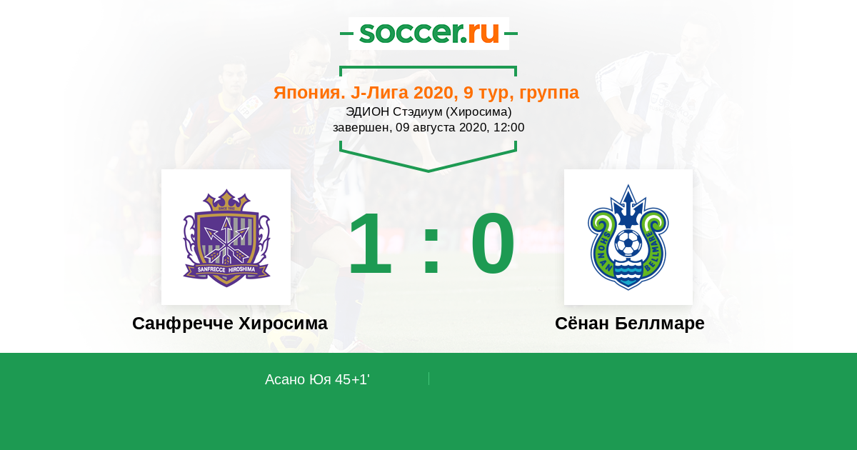 Протокол матча Санфречче Хиросима против Сёнан Беллмаре
