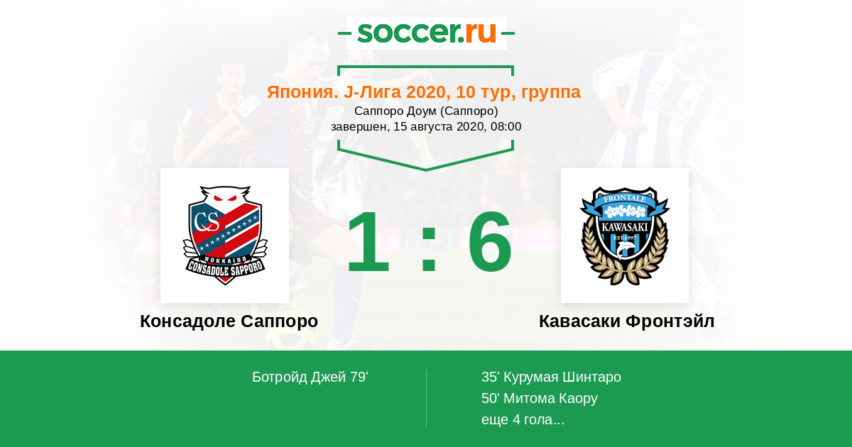 Протокол матча Консадоле Саппоро против Кавасаки Фронтэйл