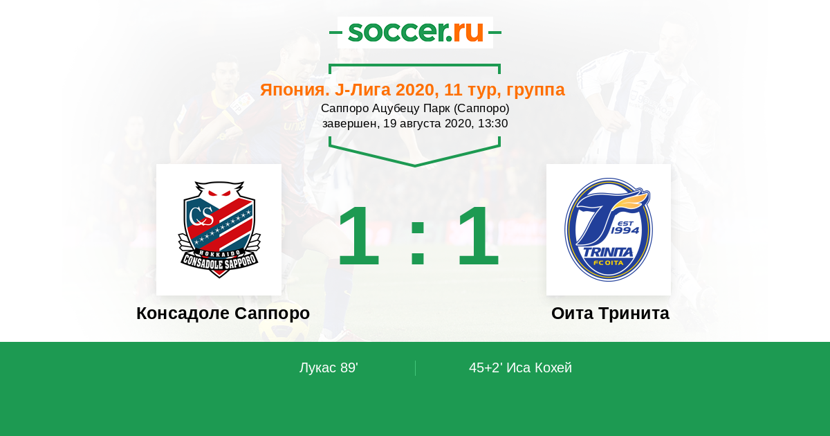 Протокол матча Консадоле Саппоро против Оита Тринита