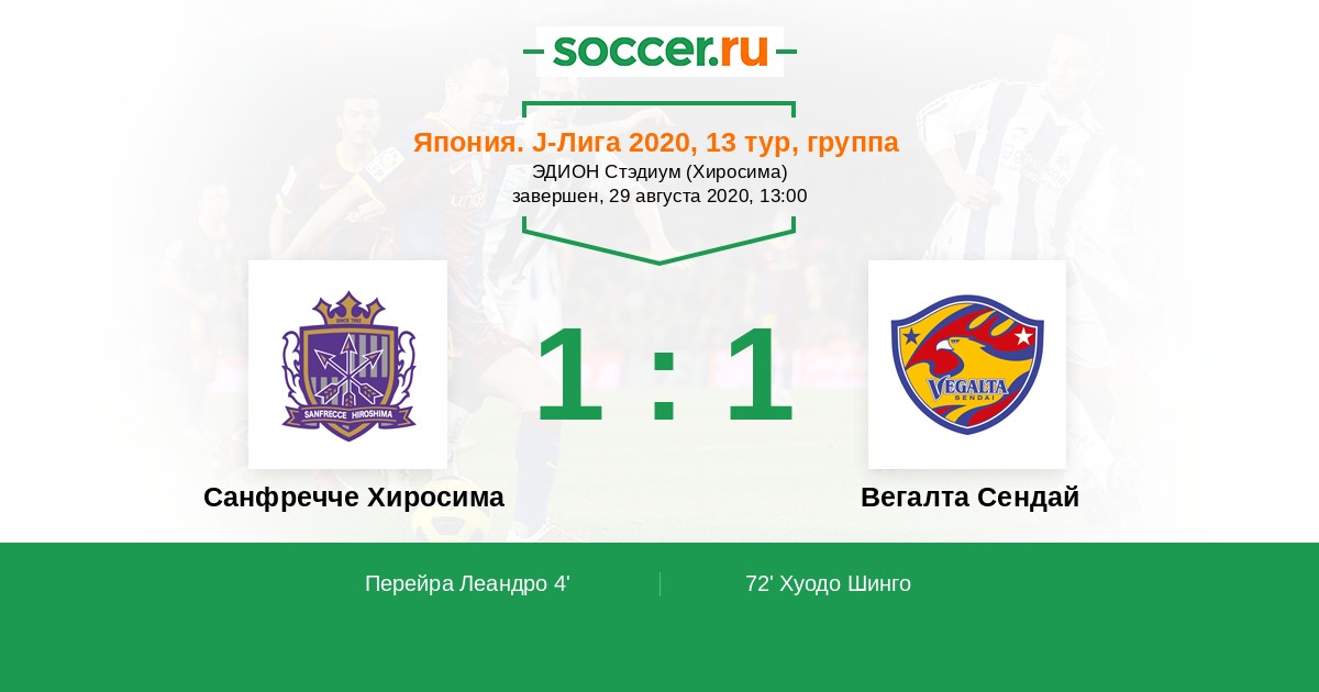 Протокол матча Санфречче Хиросима против Вегалта Сендай