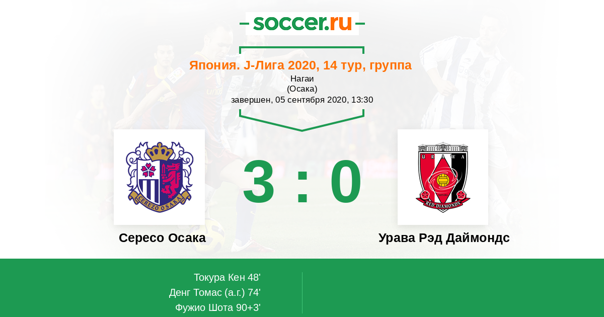 Протокол матча Сересо Осака против Урава Рэд Даймондс