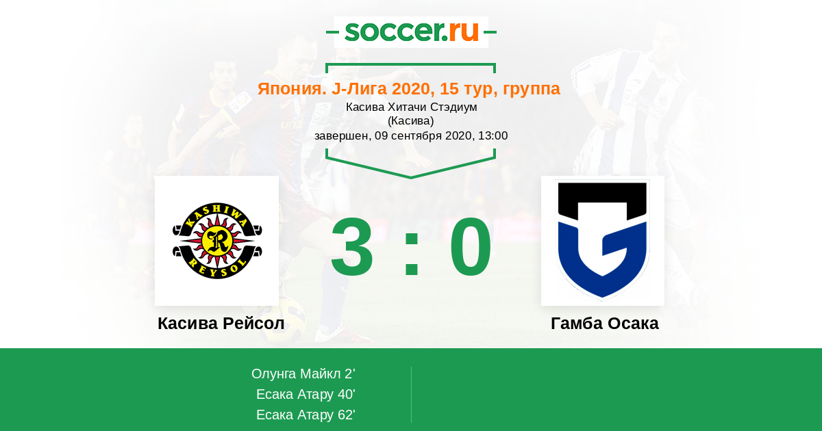 Протокол матча Касива Рейсол против Гамба Осака