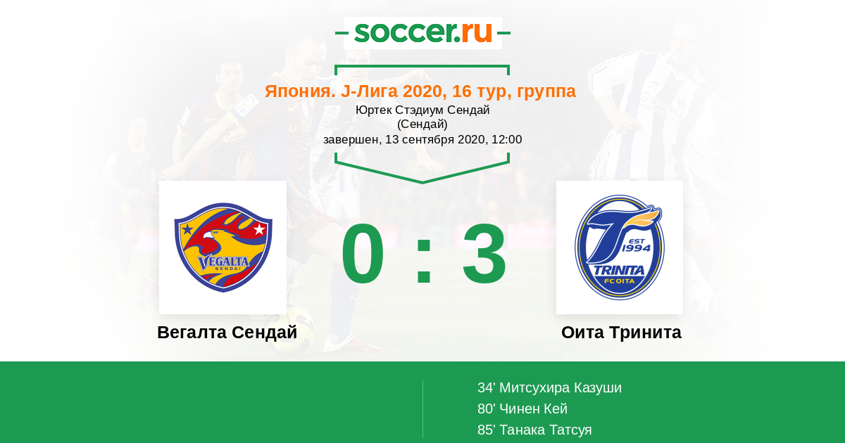 Протокол матча Вегалта Сендай против Оита Тринита