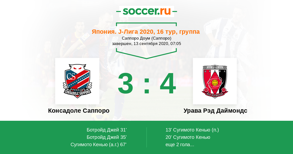 Протокол матча Консадоле Саппоро против Урава Рэд Даймондс