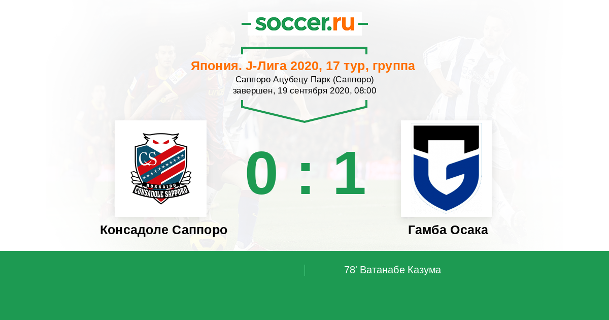 Протокол матча Консадоле Саппоро против Гамба Осака