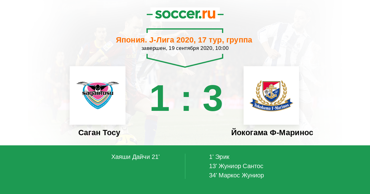 Протокол матча Саган Тосу против Йокогама Ф-Маринос