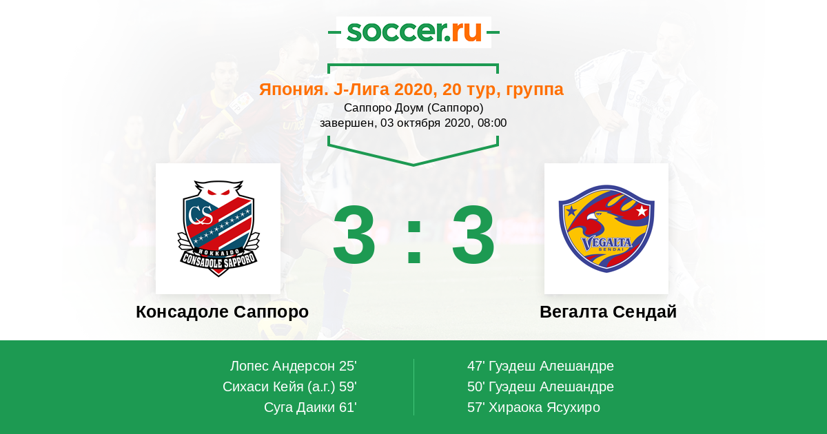 Протокол матча Консадоле Саппоро против Вегалта Сендай