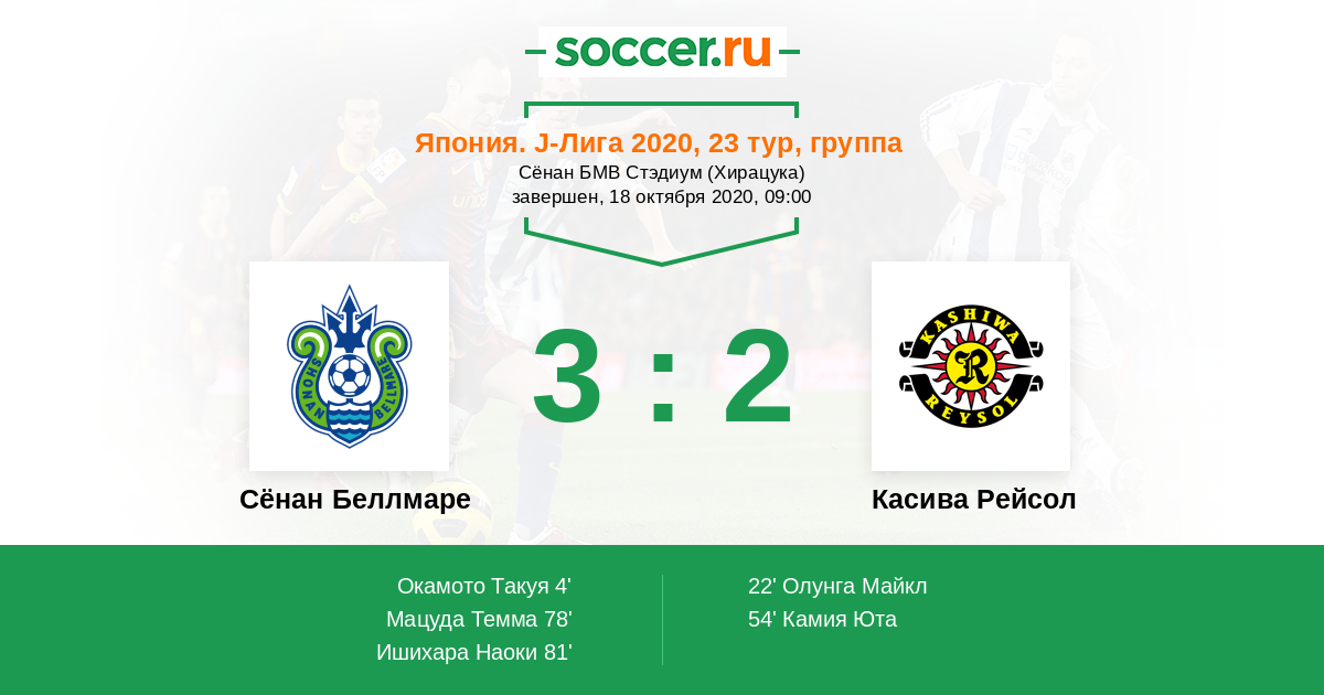 Протокол матча Сёнан Беллмаре против Касива Рейсол