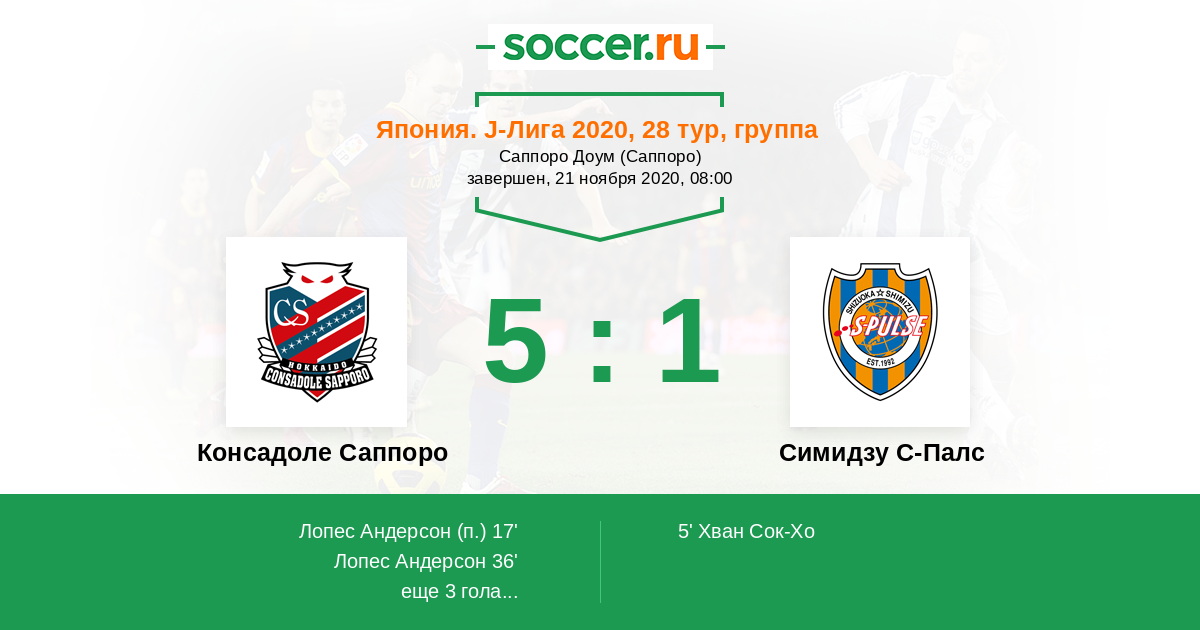 Протокол матча Консадоле Саппоро против Симидзу С-Палс