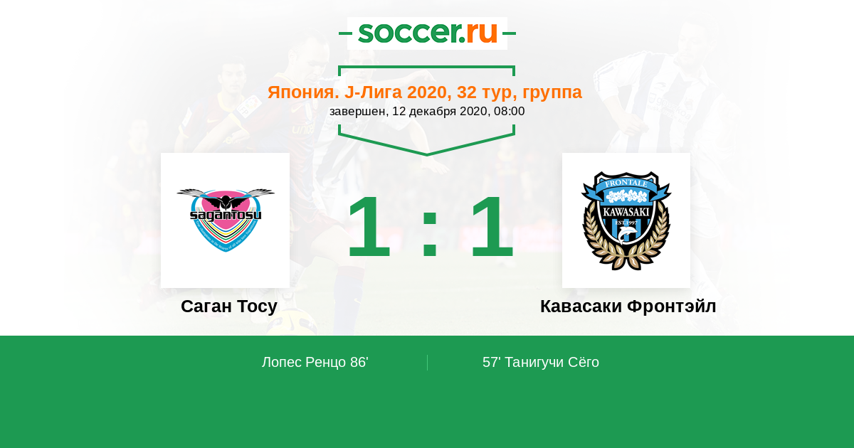 Протокол матча Саган Тосу против Кавасаки Фронтэйл