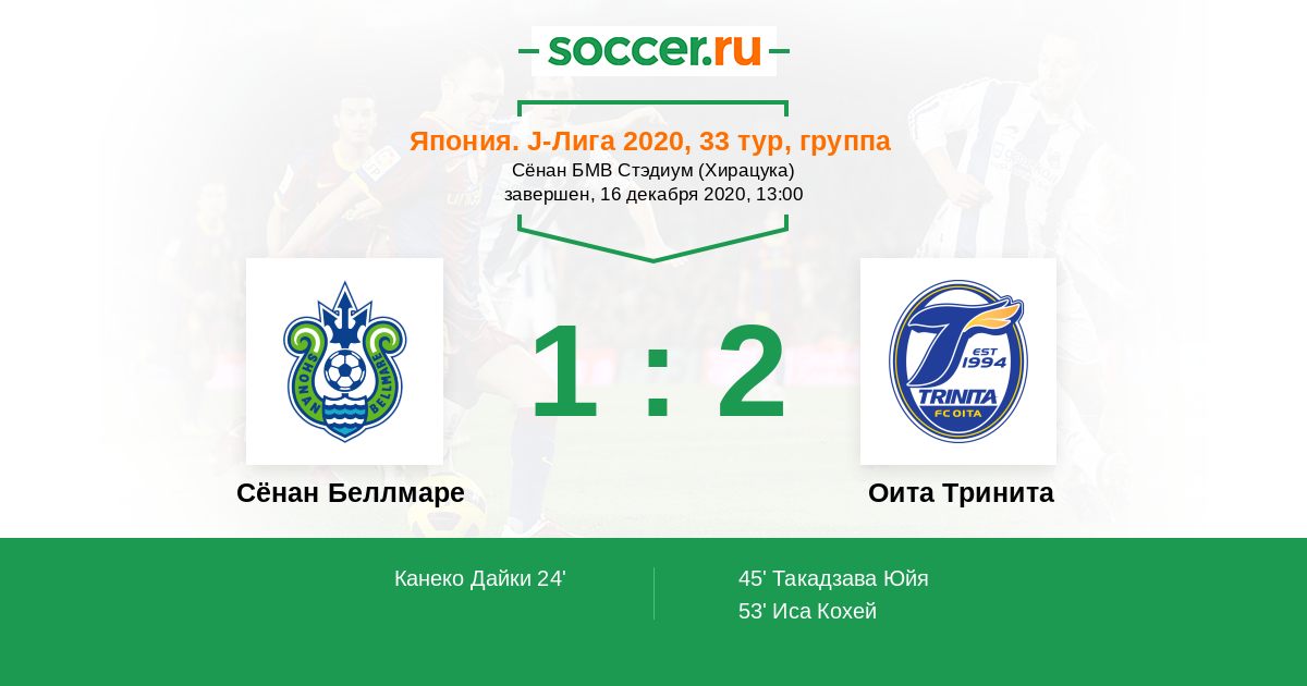 Протокол матча Сёнан Беллмаре против Оита Тринита