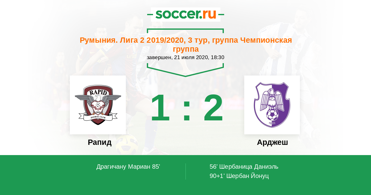 Протокол матча Рапид против Арджеш