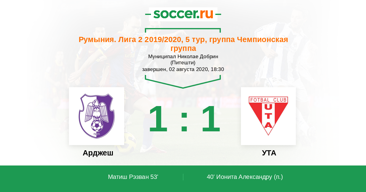 Протокол матча Арджеш против УТА