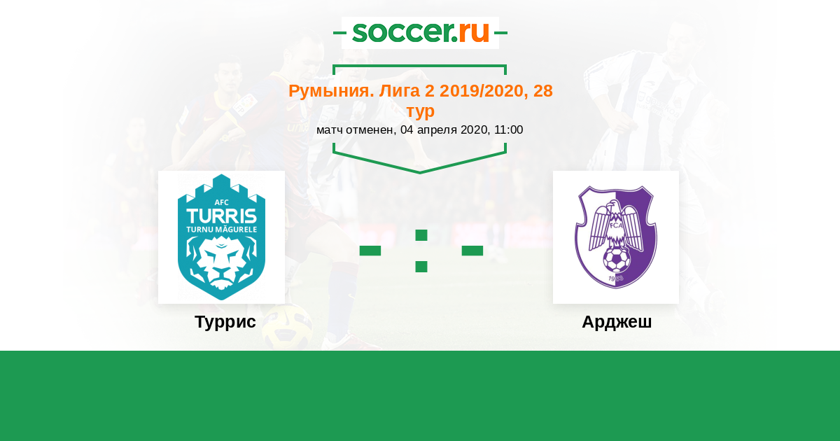 Румыния. Лига 2 03.07.2020 Туррис Логотип футбольный клуб Туррис (Турну-Мэгуреле) 0:0 Логотип футбольный клуб Арджеш (Питешти) Арджеш
