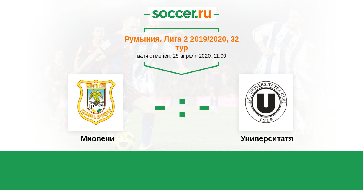 Румыния. Лига 2 26.10.2020 Миовени Логотип футбольный клуб Миовени 0:1 Логотип футбольный клуб Университатя Клуж Университатя Клуж