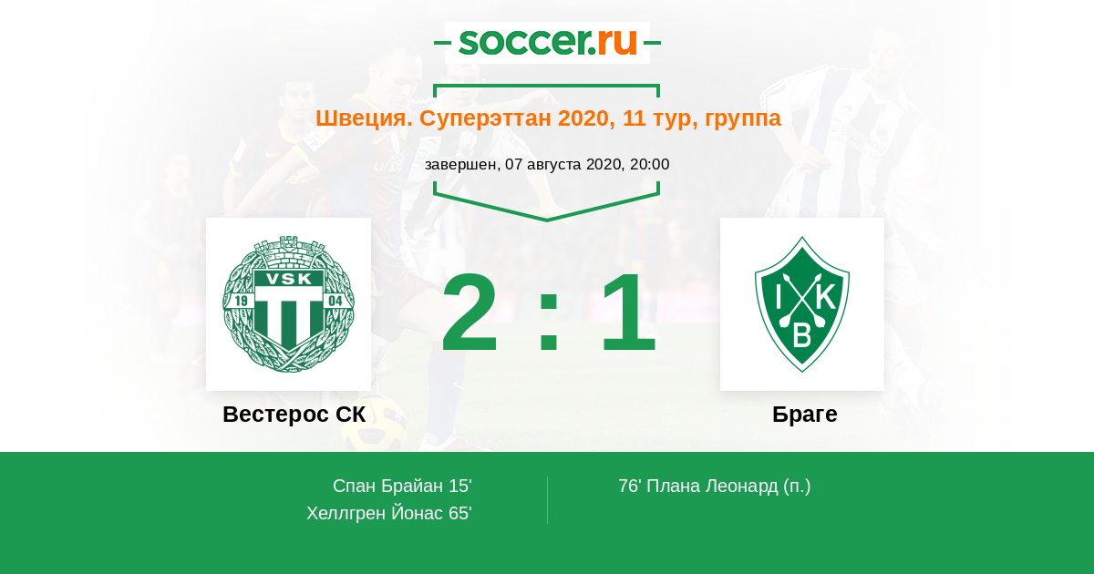 Протокол матча Вестерос СК против Браге