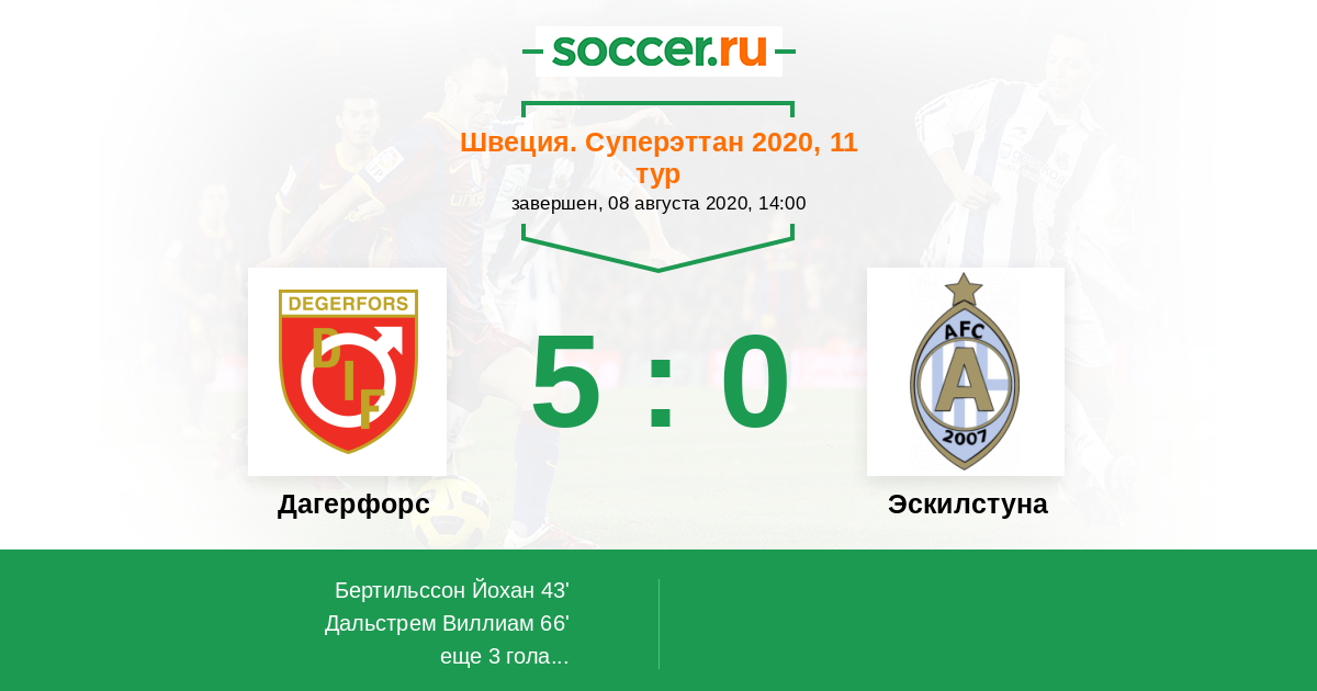 Протокол матча Дагерфорс против Эскилстуна