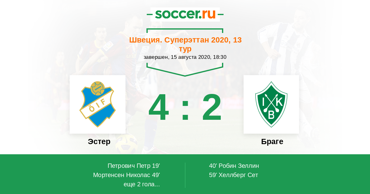 Протокол матча Эстер против Браге