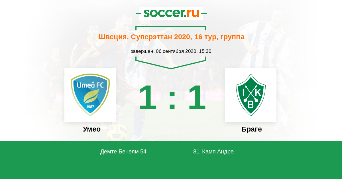Протокол матча Умео против Браге