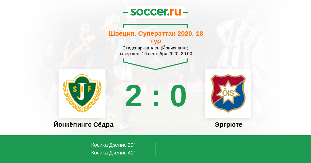 Протокол матча Йонкёпингс Сёдра против Эргрюте