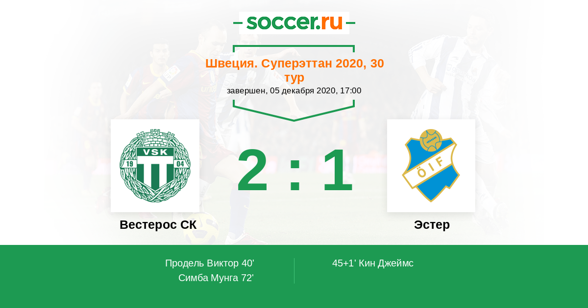 72' (2:1) Симба Мунга (70) (Йоханссон Симон (6))