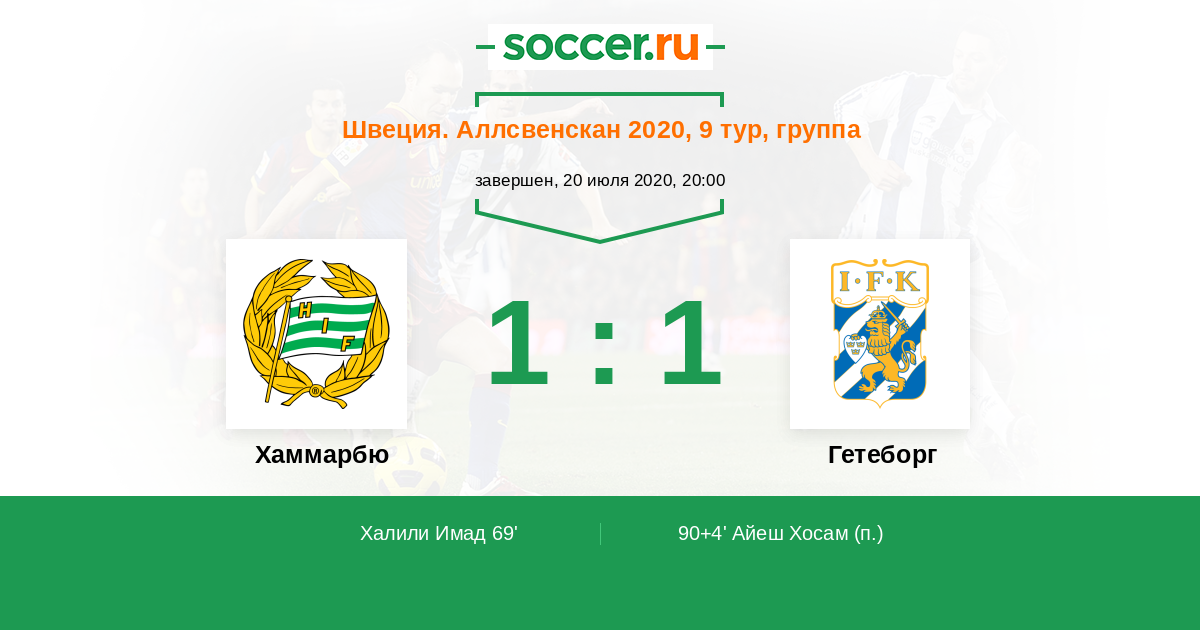 69' (1:0) Халили Имад (7) (Людвигсон Густав (16))
