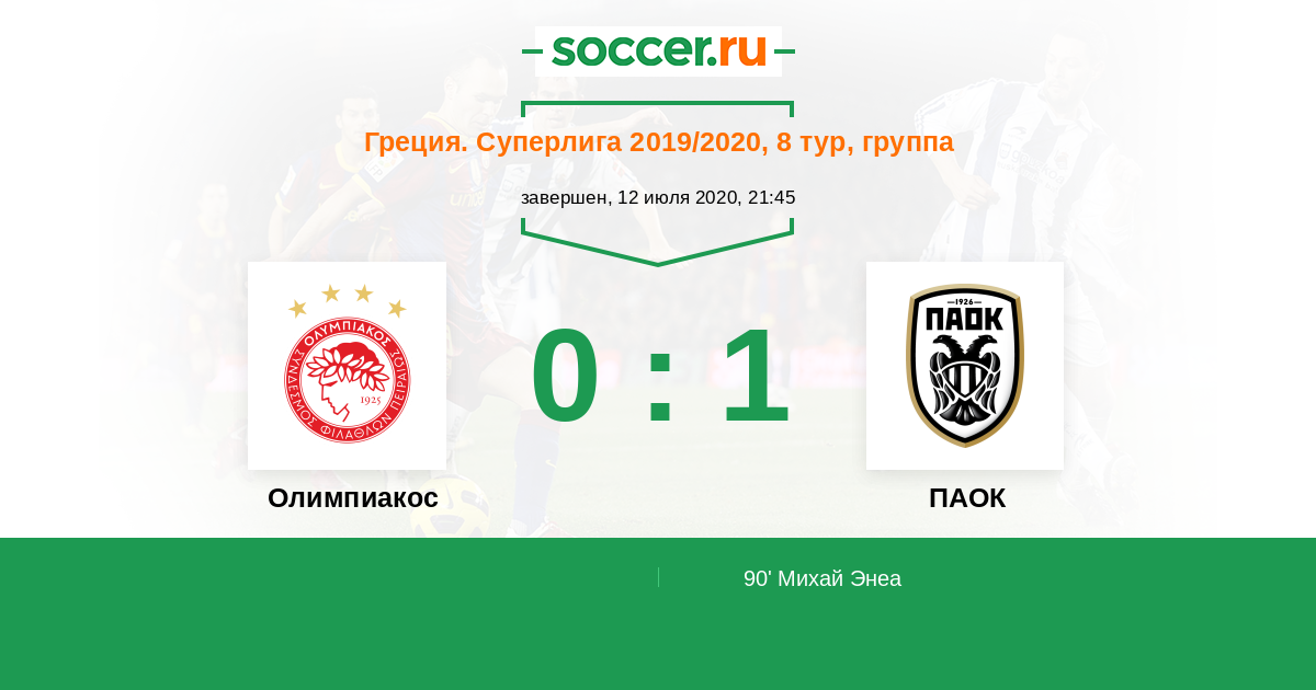 Протокол матча Олимпиакос против ПАОК
