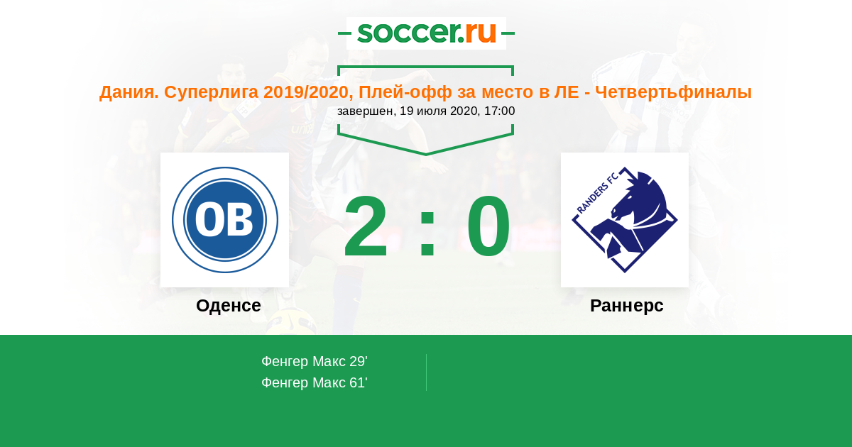 Протокол матча Оденсе против Раннерс