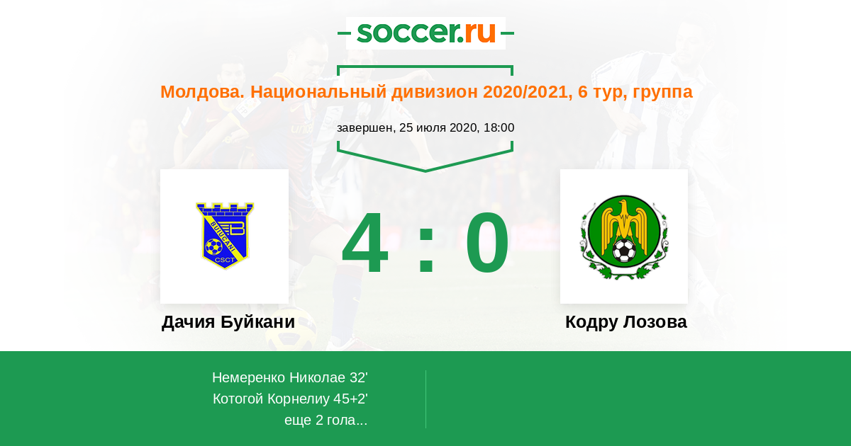 Протокол матча Дачия Буйкани против Кодру Лозова