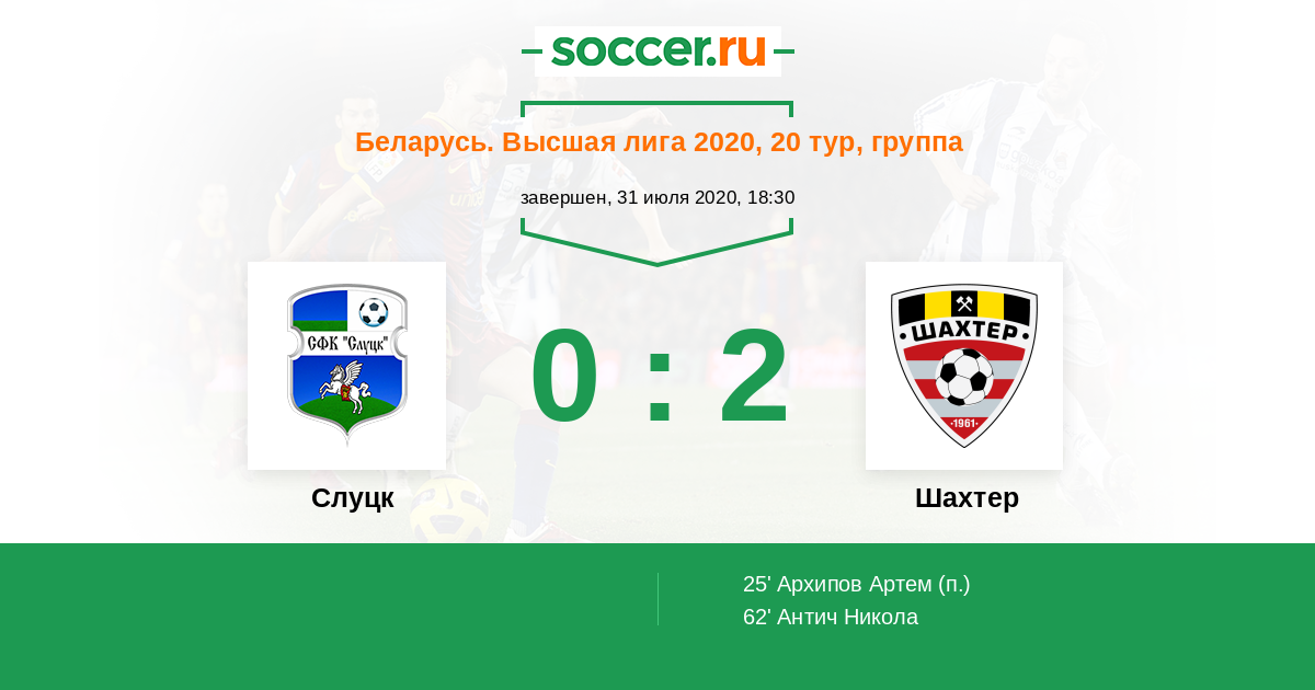 Протокол матча Слуцк против Шахтер