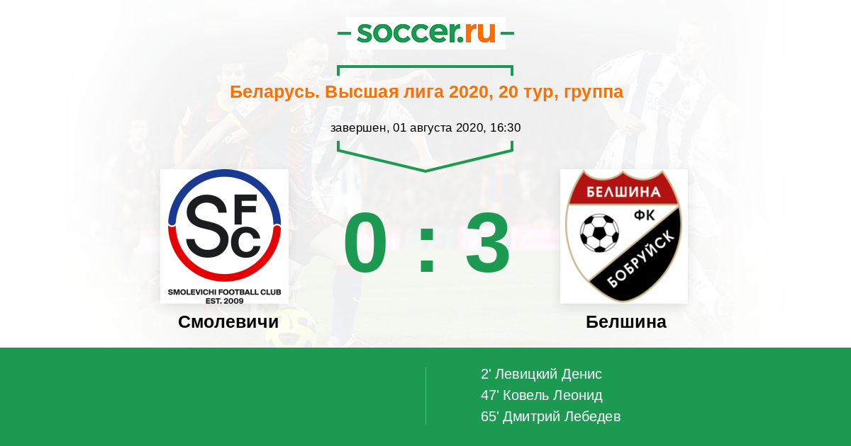 Протокол матча Смолевичи против Белшина