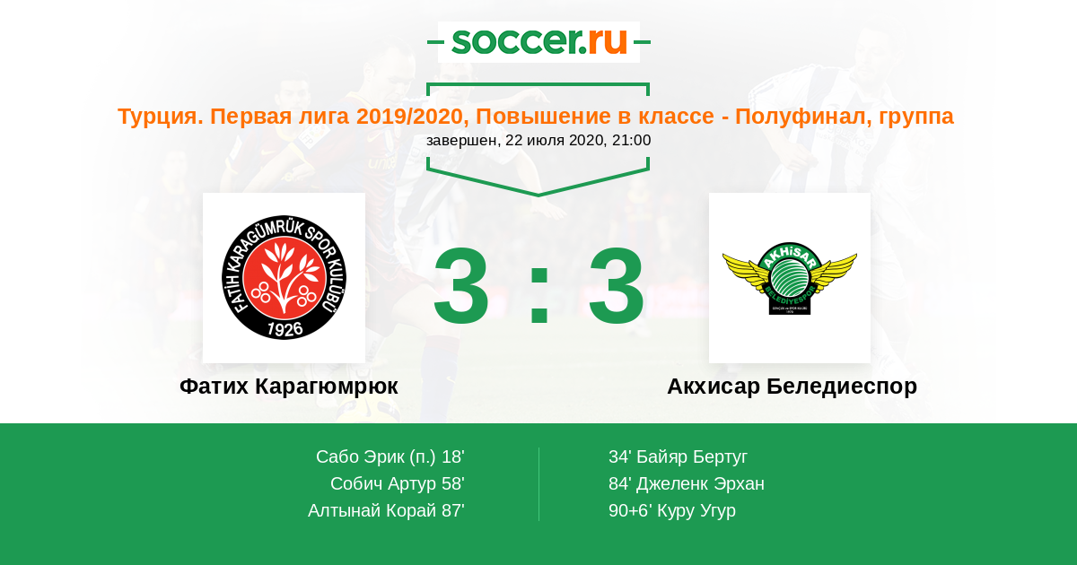 Протокол матча Фатих Карагюмрюк против Акхисар Беледиеспор