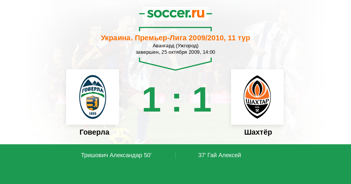 Протокол матча Говерла против Шахтёр