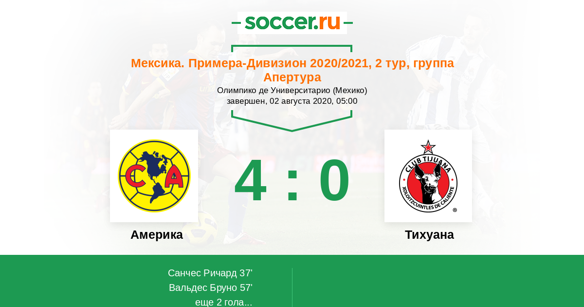 Протокол матча Америка против Тихуана