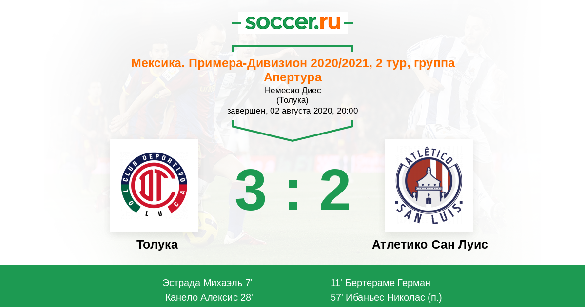 Протокол матча Толука против Атлетико Сан Луис