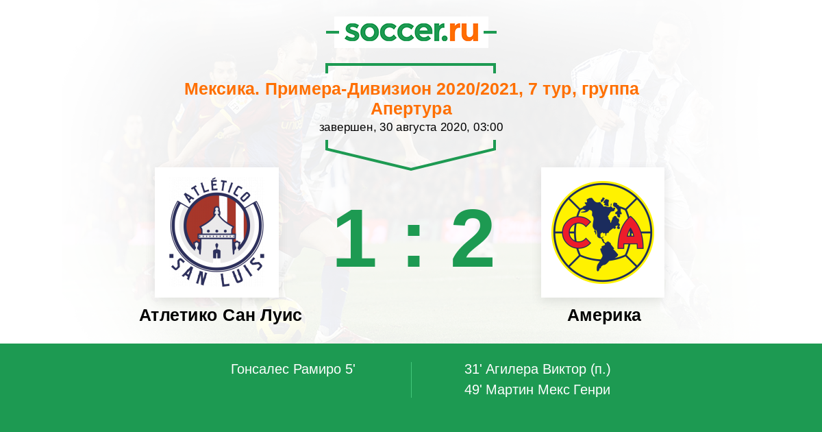 Протокол матча Атлетико Сан Луис против Америка