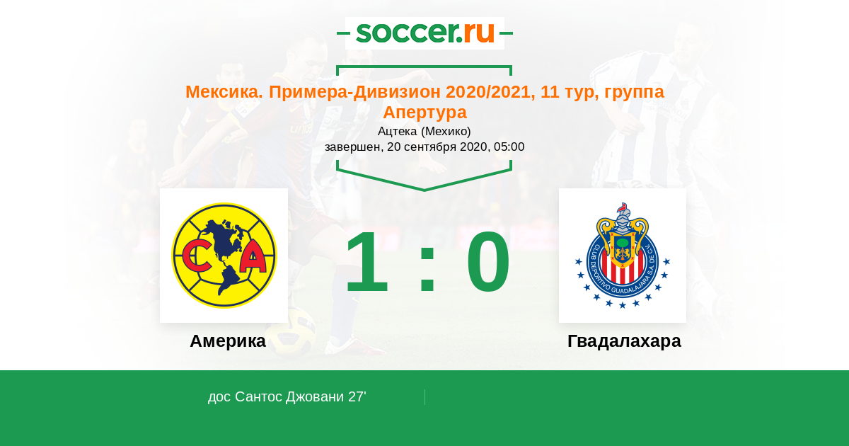 27' (1:0) дос Сантос Джовани (10) (Санчес Ричард (20))